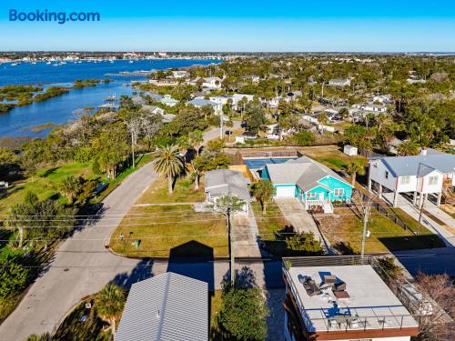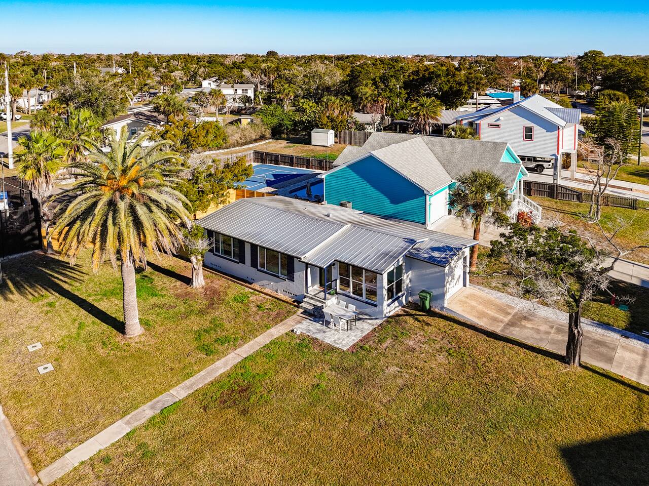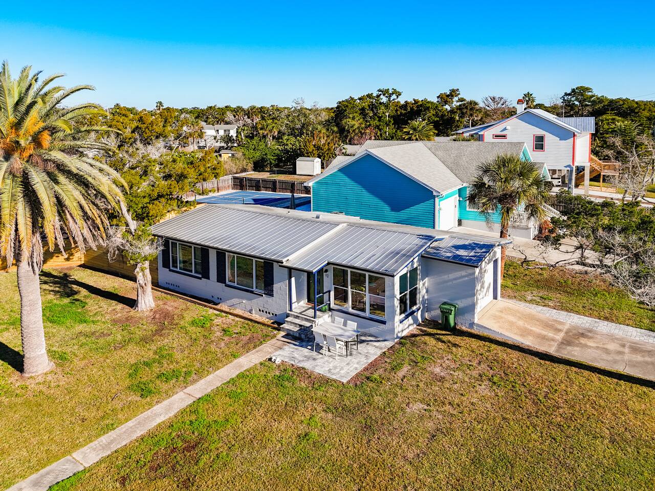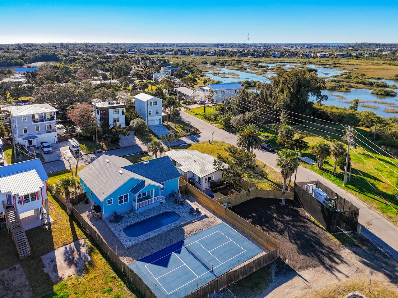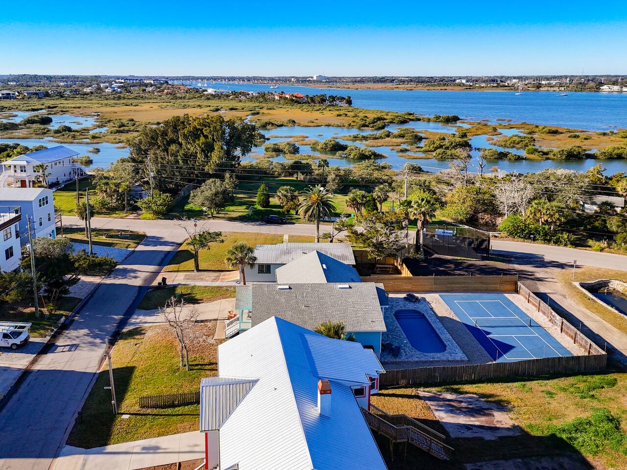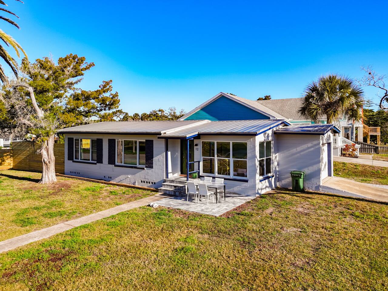 Private St. Augustine cottage with a heated & cooled stock tank pool and two relaxing patios. This cozy 2BR retreat features a king and queen memory foam beds, full kitchen, Smart TVs, central A/C, washer/dryer, and driveway parking for up to 6 vehicles. Located in a quiet neighborhood just minutes from historic downtown and a short drive to the beaches—perfect for couples, families, or friends seeking a coastal getaway.